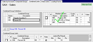 Group member lists for combined limits in purchases, sales, inventory and transportation etc. are Base/Alternate , but better set up in the base case so that they are consistently defined within the model. The Group itself behaves like Model Data and will be visible in all cases. If you are not careful, you might get an unpleasant surprise, like a limit with no contributions. In cases without limits the group will be ignored. So, go for the no "m" option. And if you have set up a membership list in an alternate case you can move it with just a copy and paste into the grid in the base case. When you go back to the alternate case afterwards the "m"'s will be gone.