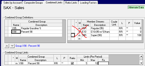 Compare the base case data in the panel on the right to the alternate case data in the panel on the left. The alternate case uses and displays the same data records as the base case, except where a value in the row has been changed. Those rows are marked with an “m”. Some limits have been added to the existing rows. You can sort on the “M” column in any grid; "Ascending" will cluster the modified records at the top. If you right-click on any one of these rows, you can choose to “Revert Back to Base Case Data". If you right-click on an “m” row and the revert is not offered, then the record has been added in the alternate case and does not have corresponding base data.